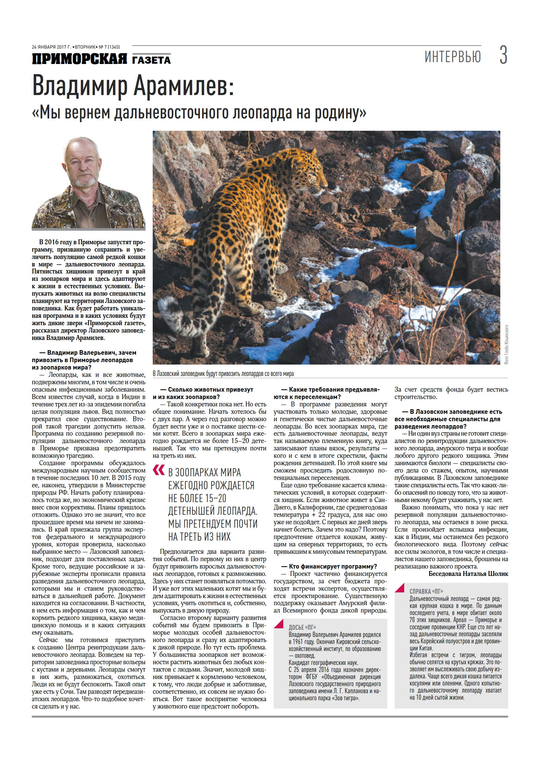 - Владимир Арамилев: леопардов для Центра реинтродукции попросим у зоопарков